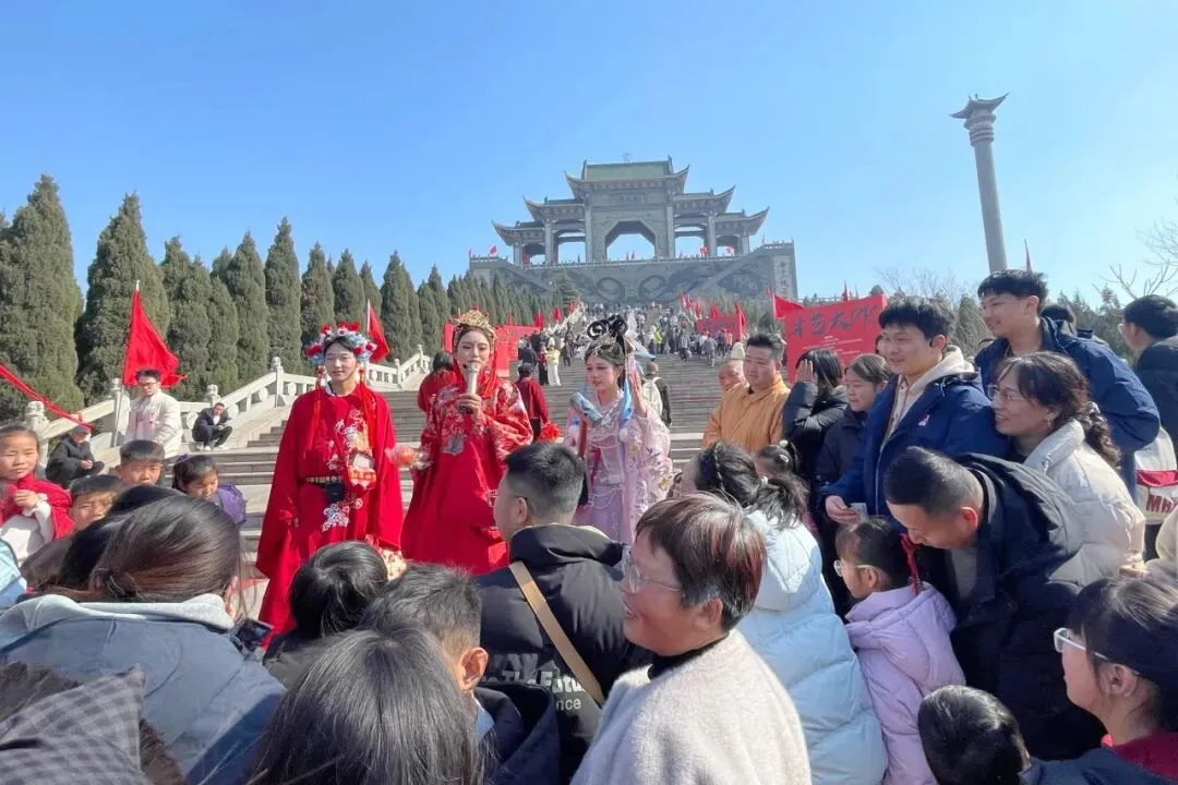 古灵山景区人气爆棚,沉浸式演绎轮番上演,祥瑞氛围拉满。女娲赐福、财神送宝、魔家四将机甲巡游惊艳亮相,各路瑞祥角色与游客亲密互动,争相合影定格美好瞬间。