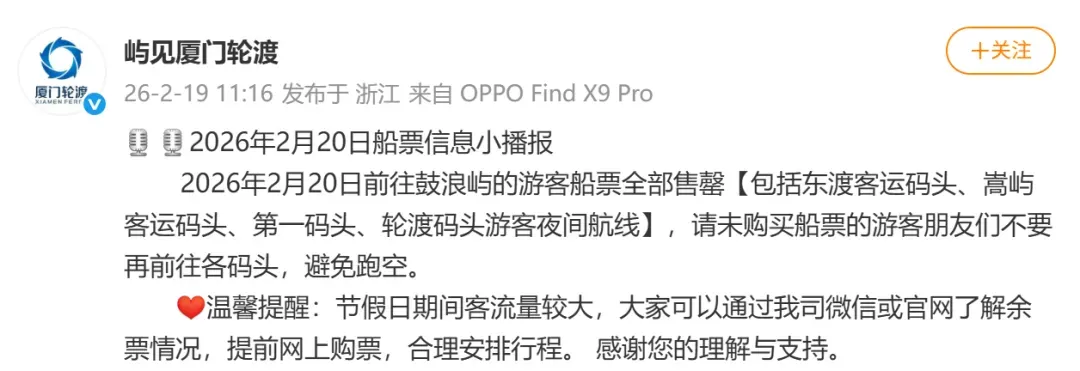 2月20日船票已售罄