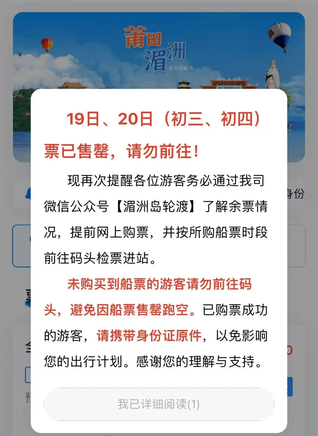 未购买到船票的游客请勿前往码头