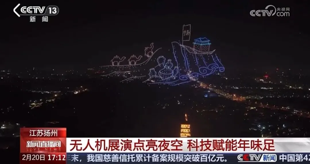 2月20日,央视《新闻直播间》以《江苏扬州 无人机展演点亮夜空 科技赋能年味足》为题,聚焦扬州景区无人机新春展演。