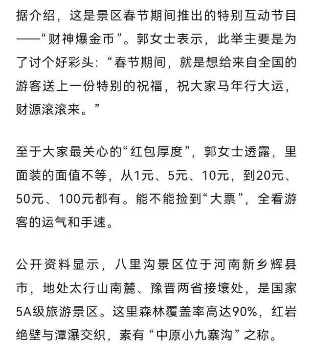 河南一景区“财神”演员在空中撒钱,地面上的游客疯狂“捡红包”,回应:撒下的是“实实在在的真钱”