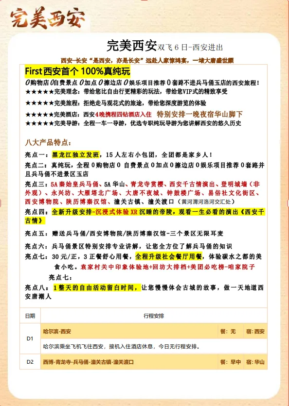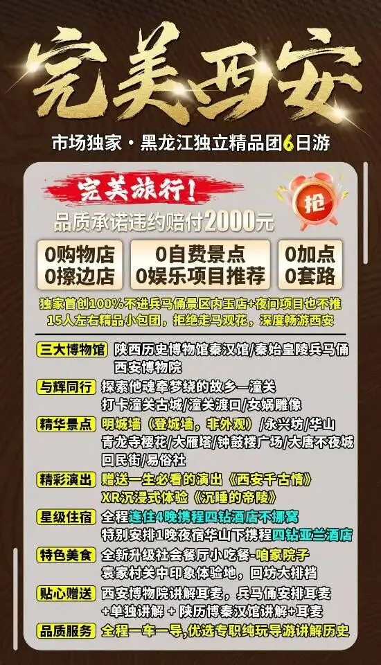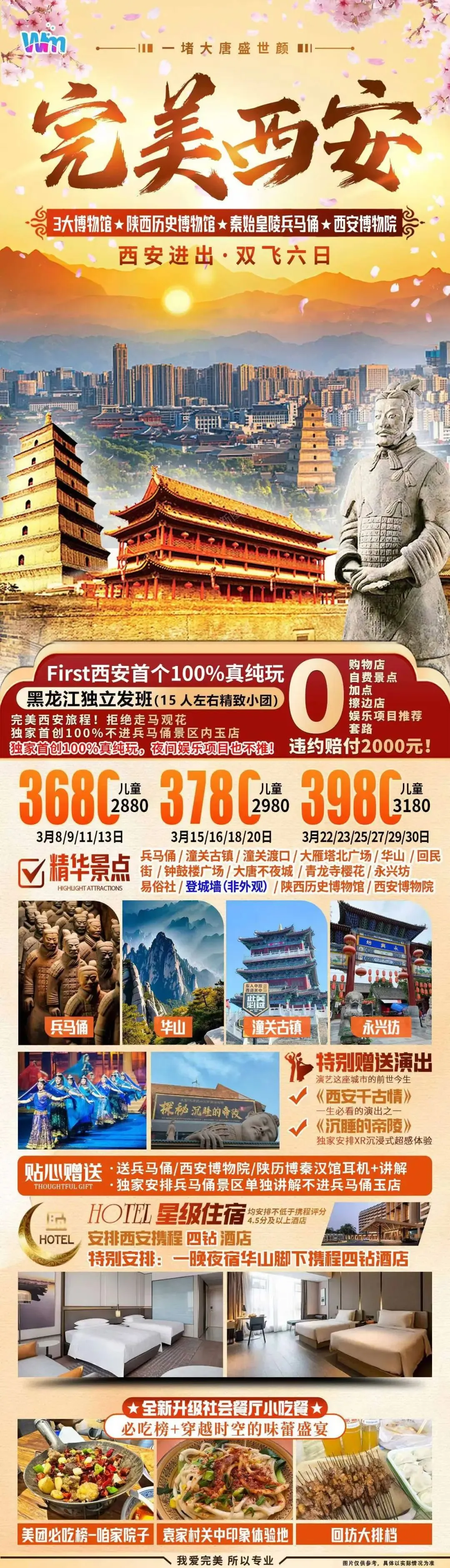【肇东纵横旅游春季团】3月8日完美西安双飞6日游 黑龙江独立成团