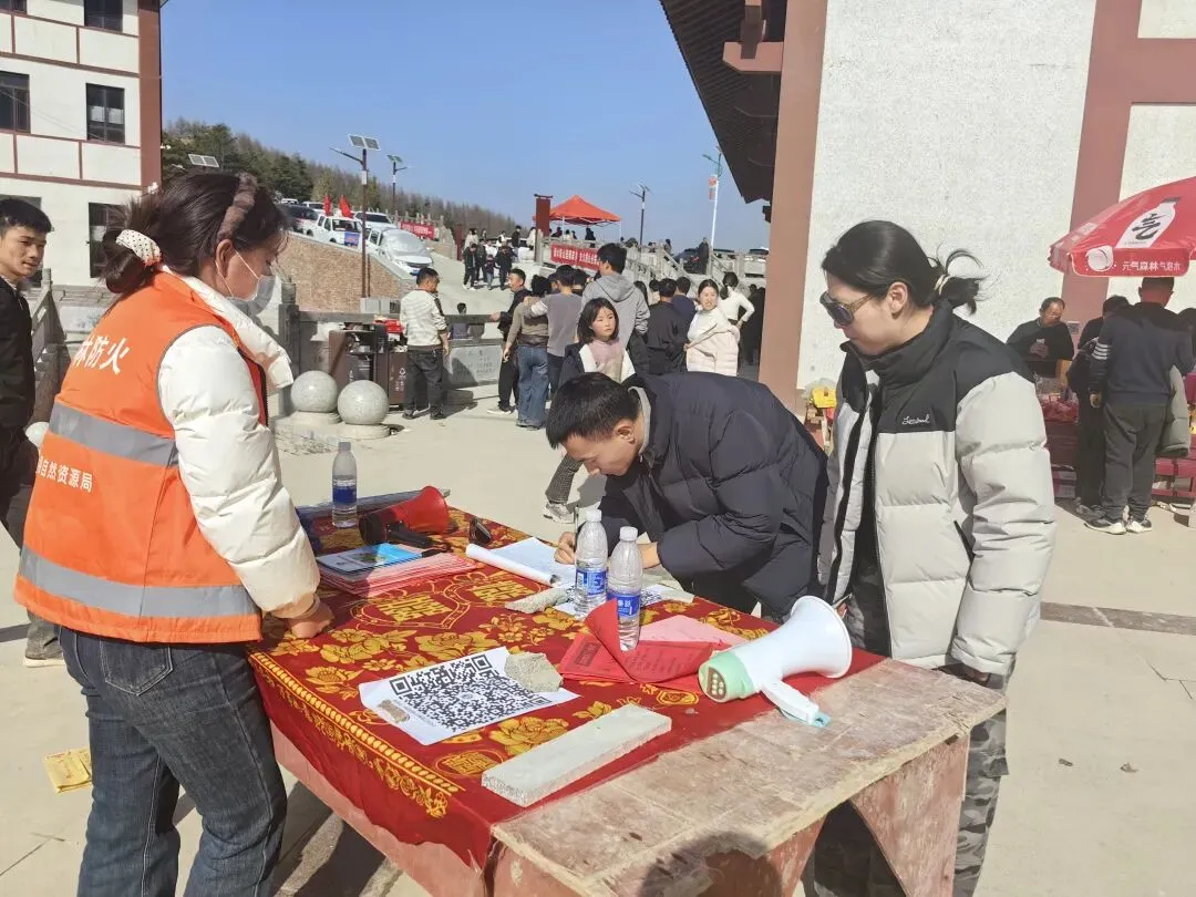 同时,联合工作组向过往游客、周边群众宣讲森林草原防火法律法规、防火禁令、安全用火常识及火灾报警、初期处置等内容,耐心解答群众咨询,引导大家自觉遵守防火规定,主动扫码登记入林,共同守护绿色生态屏障。