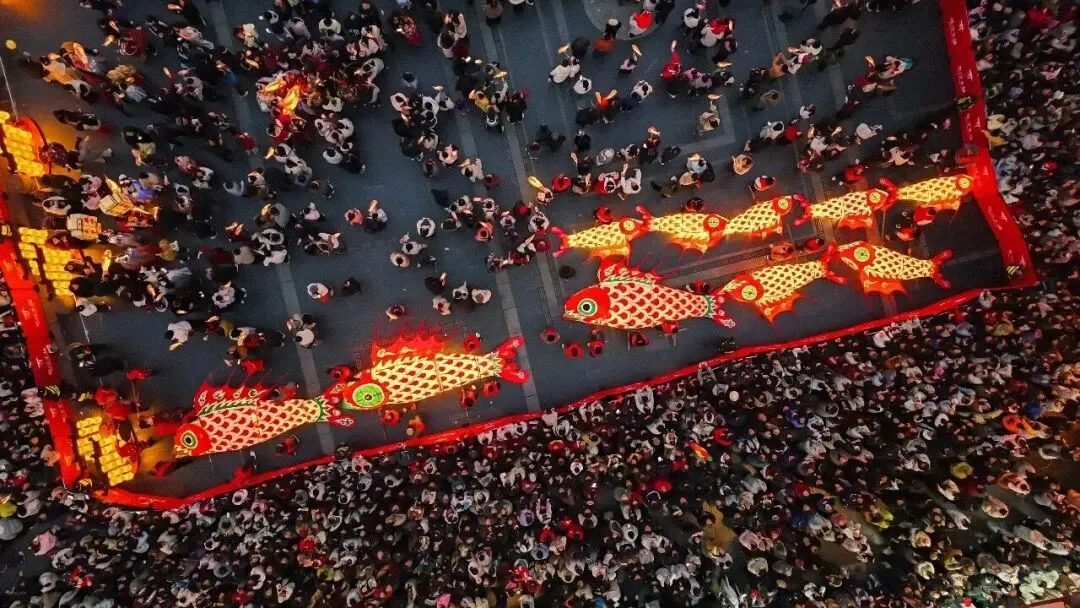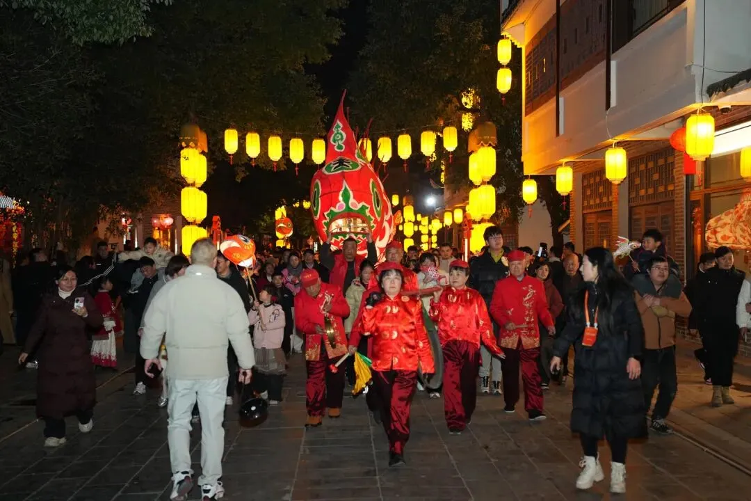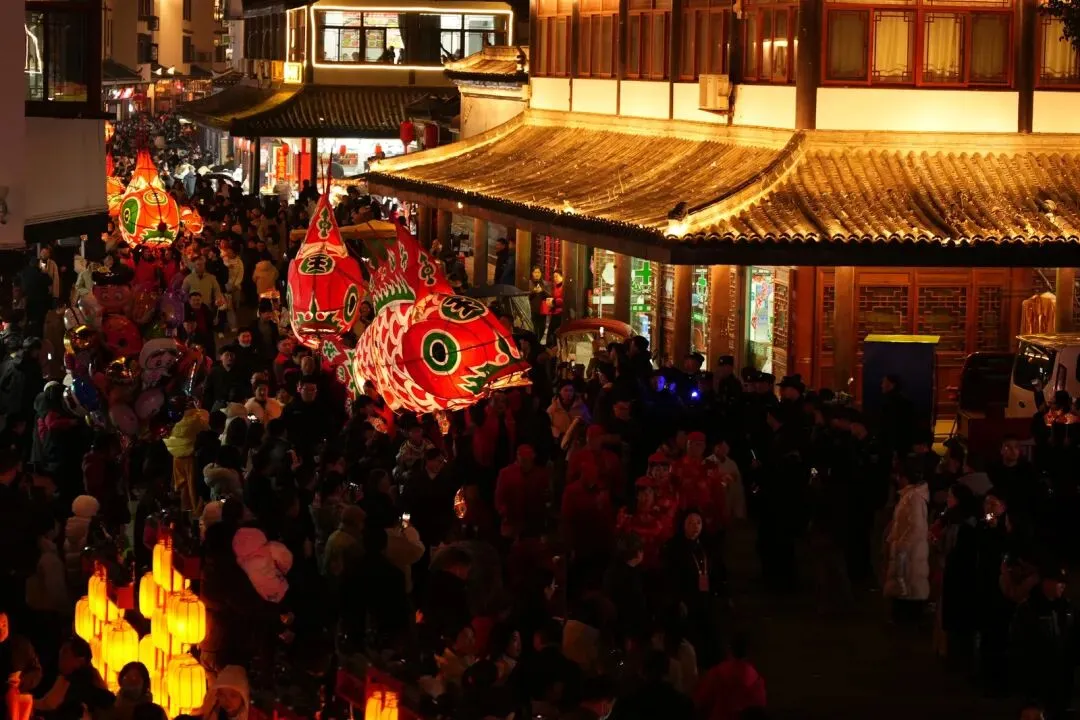 非遗鱼灯是三河古镇本次春节的“绝对主角”,“千鱼跃三河——三河古镇春晚鱼灯游园会”沉浸式巡游惊艳上演,成为游客必看的特色活动。除此之外,古镇内的“三河百戏”也引得喝彩不断,还有万年街美食摊前热气腾腾,让游客一站式品味合肥烟火滋味……