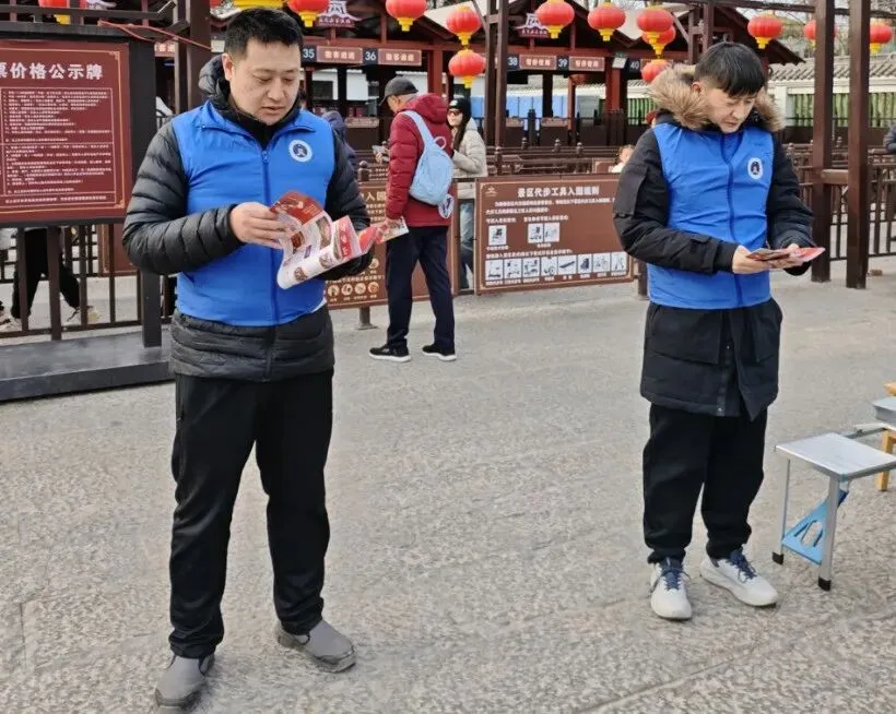 针对春节期间景区客流集中、易出现小额纠纷的特点,志愿者们配合景区工作人员,时刻准备着对游客间的排队冲突、消费争议等轻微纠纷主动介入,有效维护了景区的和谐游览秩序。