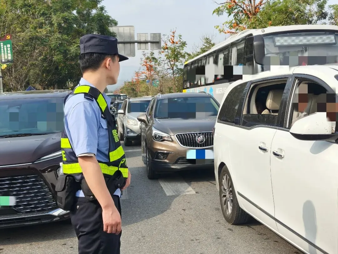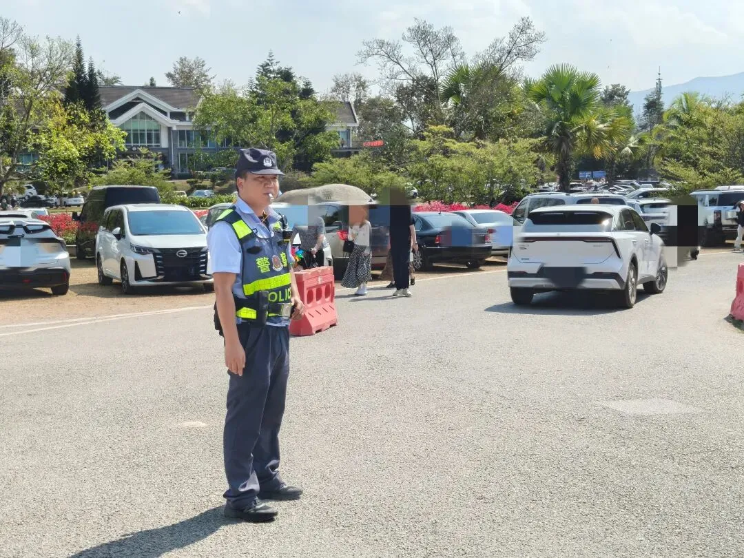 春节期间,植物园周边车流如织、人潮涌动。民辅警顶着烈日,在景区入口、停车场、核心游览区等重点区域驻点值守,采取“车巡+步巡”相结合的模式,动态疏导交通、维护人流秩序,保障景区及周边道路畅通有序。针对突发事故和游客求助,警力快速响应、高效处置,第一时间化解纠纷、解决难题,以专业的行动和温暖的态度,让游客感受到安心与满意。