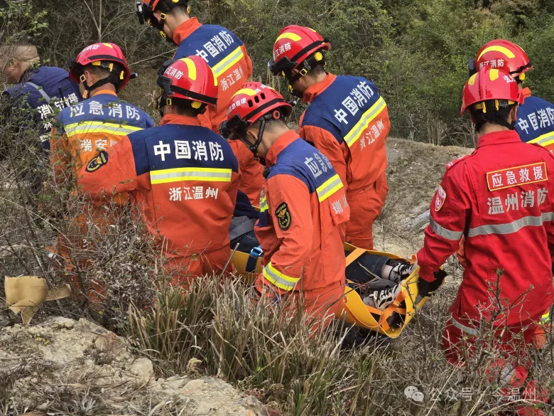 2月19日15时30分许,瑞安市湖岭镇卧龙峡景区内,一名游客在游玩时脚部受伤,被困山中无法行动。瑞安市消防救援大队接到求助后,调集救援力量,赶赴现场施救。