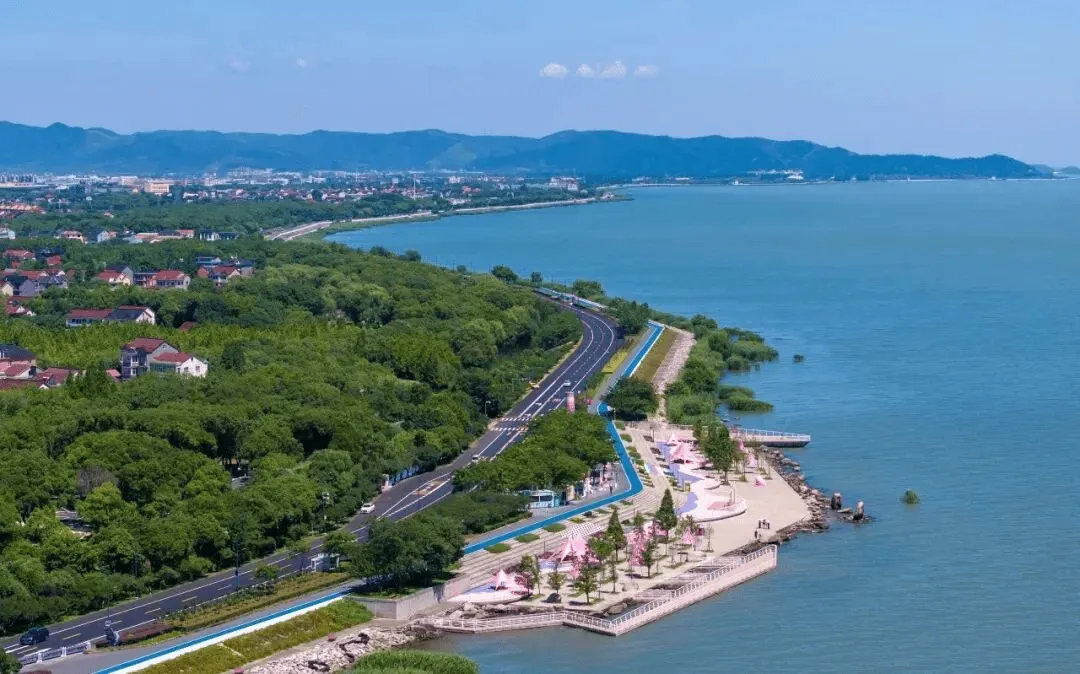 湖州长兴以34公里太湖湖岸线为基础,串珠成链,依托风景道路和户外资源,打造文旅体深度融合、有效服务经济社会发展的廊道。因线路形似数字“9”,全长99公里,故取名太湖9号公路。