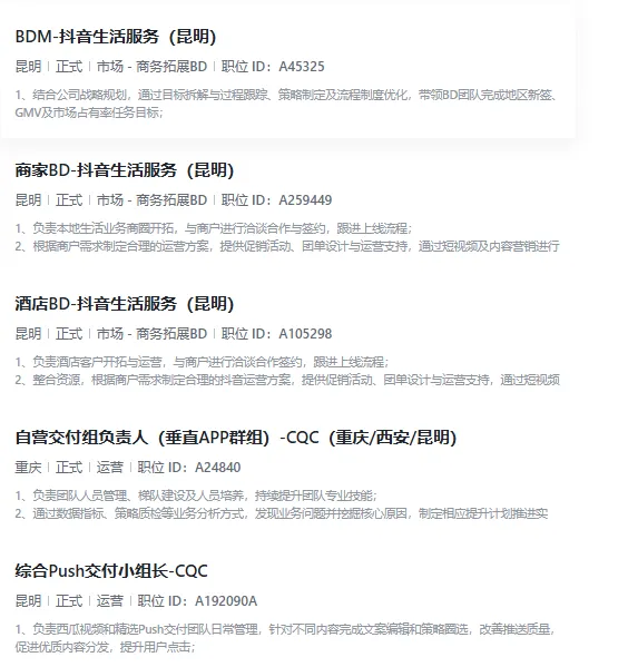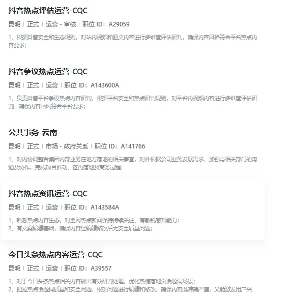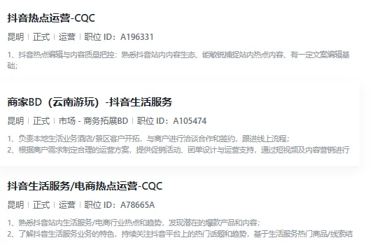 抖音字节跳动、中国旅游集团在云南昆明招聘!