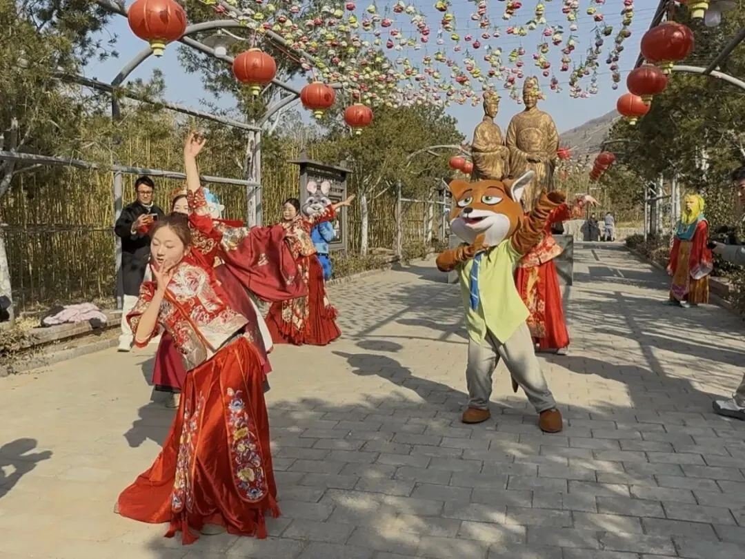 核心景区特色活动吸客。新甫山推出“五元吃炒鸡、一元品煎饼”惠民活动,搭配登高祈福、舞狮抬花轿等体验项目;如意谷打造15天亲子野趣狂欢,开展免费枕头大战、萌宠赛跑等互动活动,吸引众多家庭游客前往;见子山推出影视基地沉浸式体验活动,邀请剧组导演、明星大咖同游,让游客“当明星、上镜头”;和圣园举办新春灯会,吸引城市家庭与返乡群体参与。乡村旅游融合发展提质。推出“文旅新泰马上有喜市”黄河大集、文旅庙会,依托掌平洼等乡村旅游点,推动农文旅融合,举办年货大集、农品展销等活动,链接乡村风物与市场需求。各大炒鸡零售业户推出多口味炒鸡礼盒,让新泰炒鸡成为“爆款”城市伴手礼和文创礼盒。文旅+消费模式赋能增效。开展“新泰有礼 乐购新春”“商超贺岁 喜乐翻倍”等促消费活动,联动吾悦、卓越、青云联华等商超派送多领域通用消费券,上线文旅新泰城市新春盲盒,联动抖音、核心商超推出主题促销、满额赠礼等活动,打造一站式消费场景,释放消费活力。
