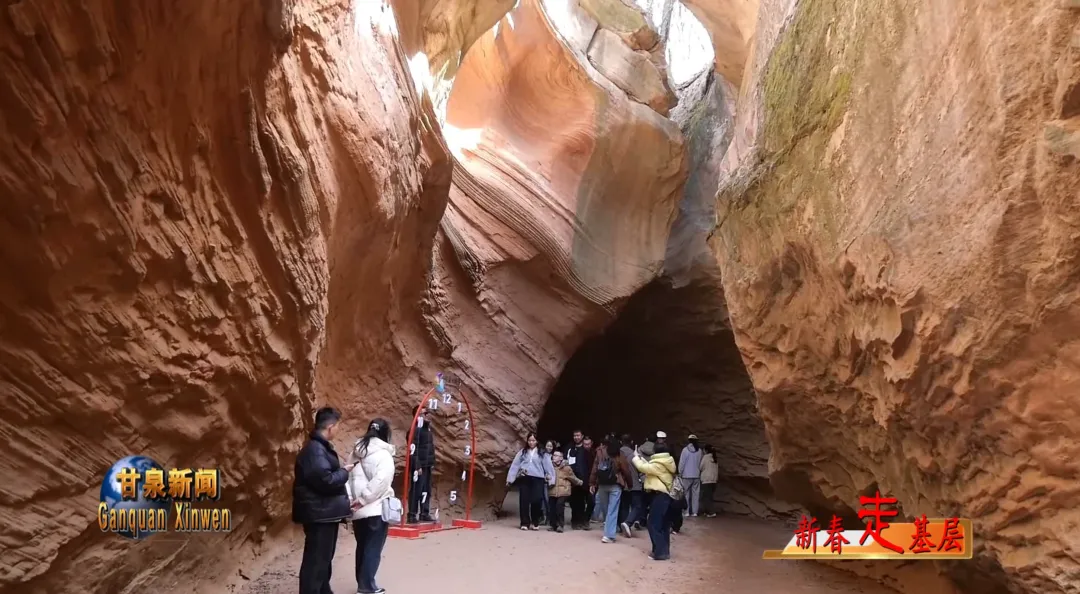 甘泉大峡谷工作人员 朱海春:春节期间游客量比较大,我们全员在岗,加强巡逻和引导,及时为游客提供咨询、帮助等服务,确保大家玩得安心、玩得顺心。