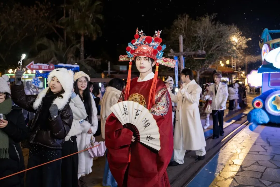 假期期间,乌镇戏剧节团队打造的非遗大戏《飞马传・神驹献瑞》领衔百余场国潮演艺,麒麟男团、SUGARFIZZ 女团及新春脱口秀轮番上演。百名NPC陪玩赚“马尼”兑扭蛋好礼,还有挑柴大挑战、超级马力花车巡游,全园布置马年限定打卡点,传统年味融合新潮玩法,欢乐不停。