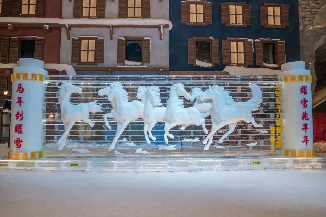 无论是刺激的高速滑道,还是适合亲子的雪圈、雪地坦克,都能让游客尽情释放欢乐。马年新春主题装饰点缀园区各处,冰雪雕刻的骏马、福字等造型氛围感拉满,成为拍照打卡的绝佳点位。