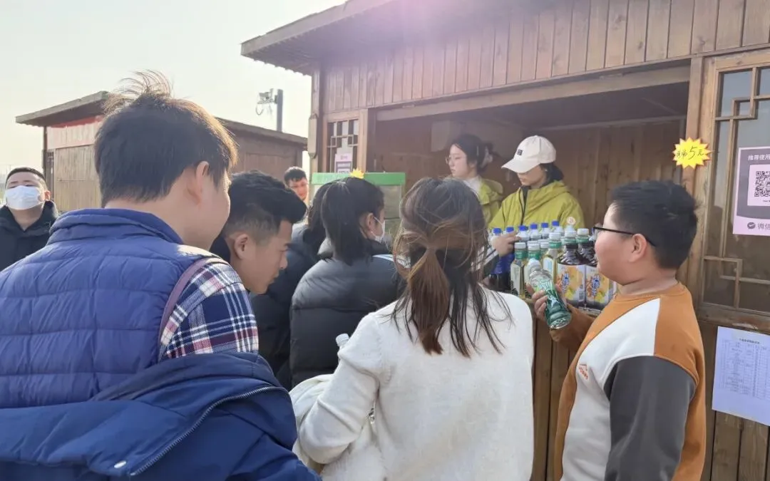 售货点的工作人员时刻在岗,备好各类饮品、零食与特色小商品,满足游客游玩中的各类需求。