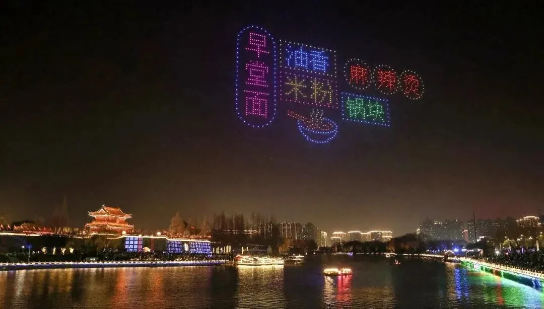 荆州千架无人机“凤舞九天”,演绎“赤黄红”英雄印记