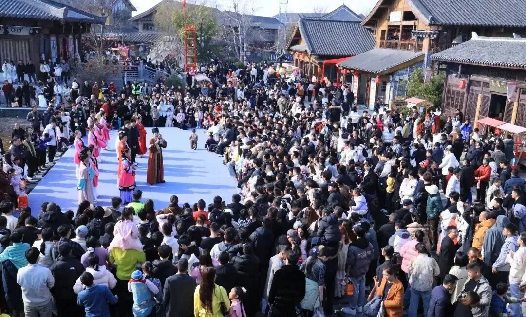 枣阳市汉城景区春节实景大戏轮番上演,人潮涌动