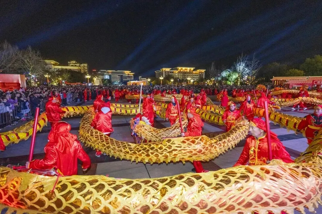 大年初五,黄冈“东坡庙会 黄州东坡 龙灯巡游”启幕,36条龙灯舞动全城