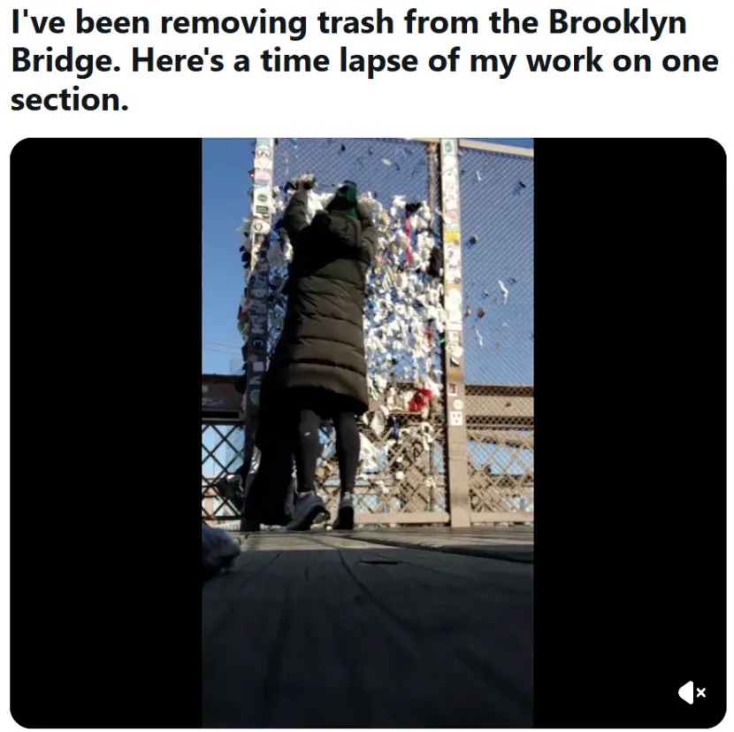 面对这一乱象,负责维护布鲁克林大桥的纽约市交通局表示。