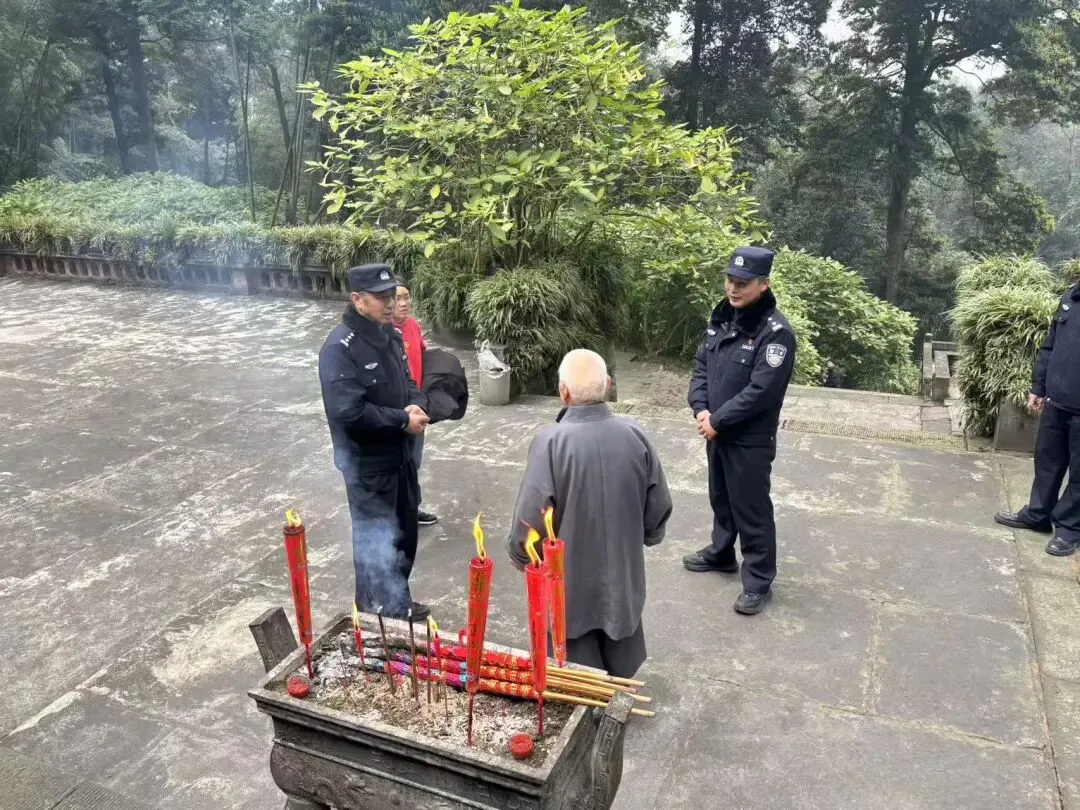 针对金顶片区观日出游客集中的情况,公安机关提前研判,增派警力加强重点时段、重点区域的巡逻值守,设置便民服务点,及时为游客提供咨询和帮助,有效维护了景区秩序。