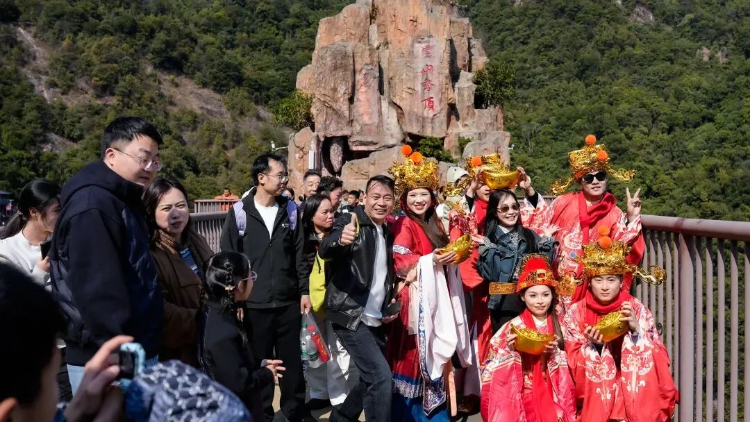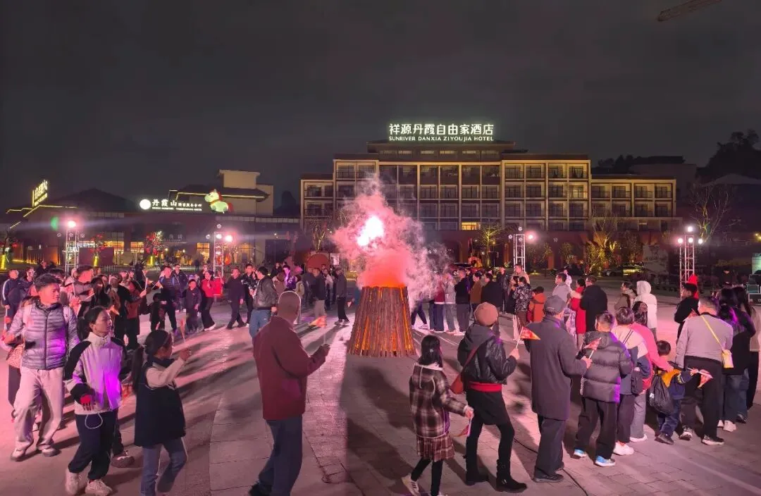 位于景区入口处的祥源丹霞自由家酒店,主打现代简约与自然山水融合的设计美学,凭借“推窗即见丹山碧水”的绝佳视野,成为年轻客群与亲子家庭的热门选择。“酒店1月23号才刚开业,春节的人气远超预期,从除夕开始预订量就不断攀升,初三至初五连续多日满房。”酒店有关负责人王欣告诉记者。春节期间,祥源丹霞还在酒店门口推出篝火狂欢、鱼灯巡游等特色活动,住客陈先生点赞道:“活动丰富有年味,房间干净安静,早餐很丰盛,全家都满意。”