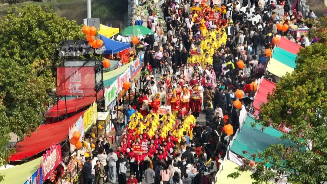 “广货行天下·2026曹溪年味集”在马年春节强势领跑假日市场,正月初一开集当天便人气爆棚,接待游客量超3万人次,迎来新春开门红。活动紧扣“韶风、韶物、韶艺、岁食”四大主题,布设83个特色展位,集中展示非遗手作、时令美食、风物年礼,还特别开设了“广货行天下 菌菇鲜万家”曲江食用菌专场,传统年货叠加食用菌曲江王牌农特产品,一站式呈现粤北地道年味。曹溪年味集系列活动春节期间还登上了央视。