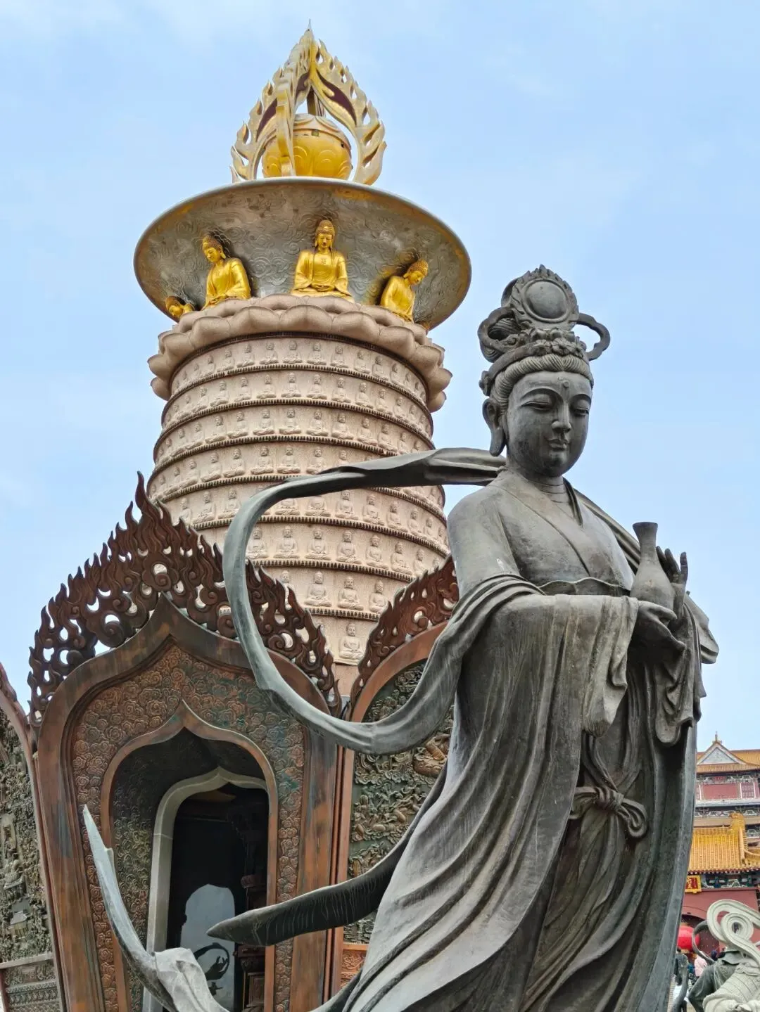 Pss:宝莲寺离市区较远,离东站较近,如果是走徐州东站回去的话,建议安排在最后一天离开前的最后一站。宝莲寺游客中心门口有寄存柜,方便寄存箱子。宝莲寺一定要走到底进通天阁,40m高佛像的压迫感。