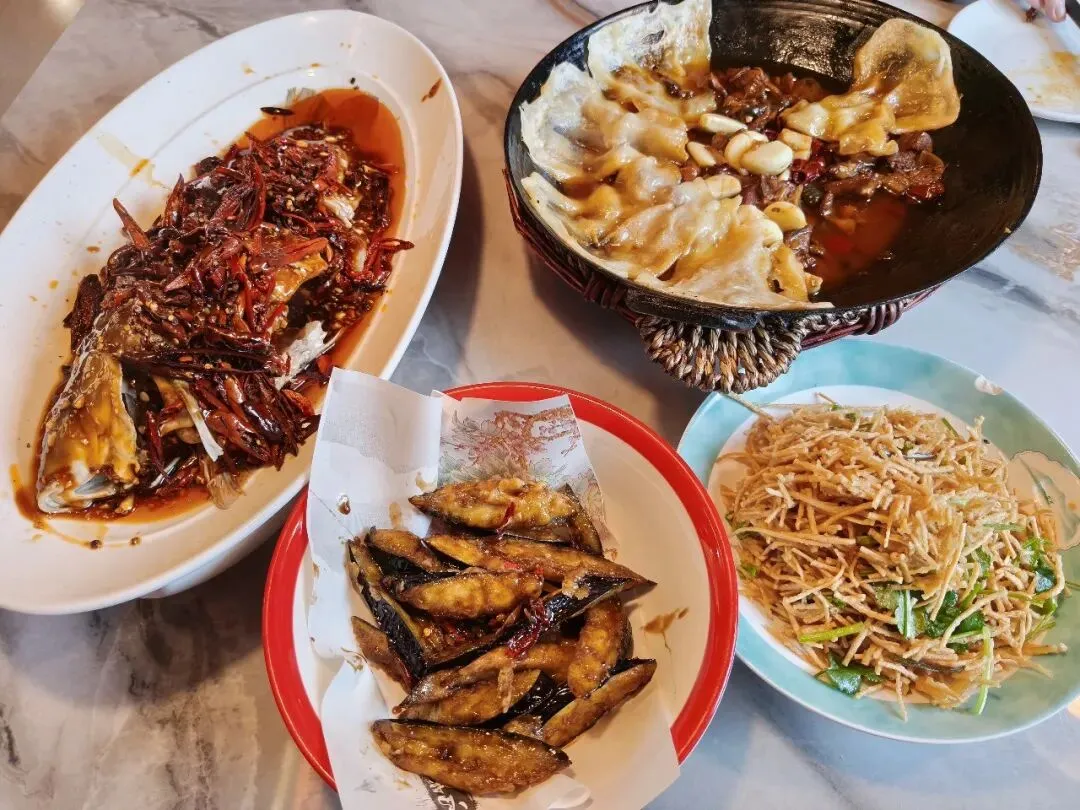 蒜爆鱼不错,干煸茄子不如贾青