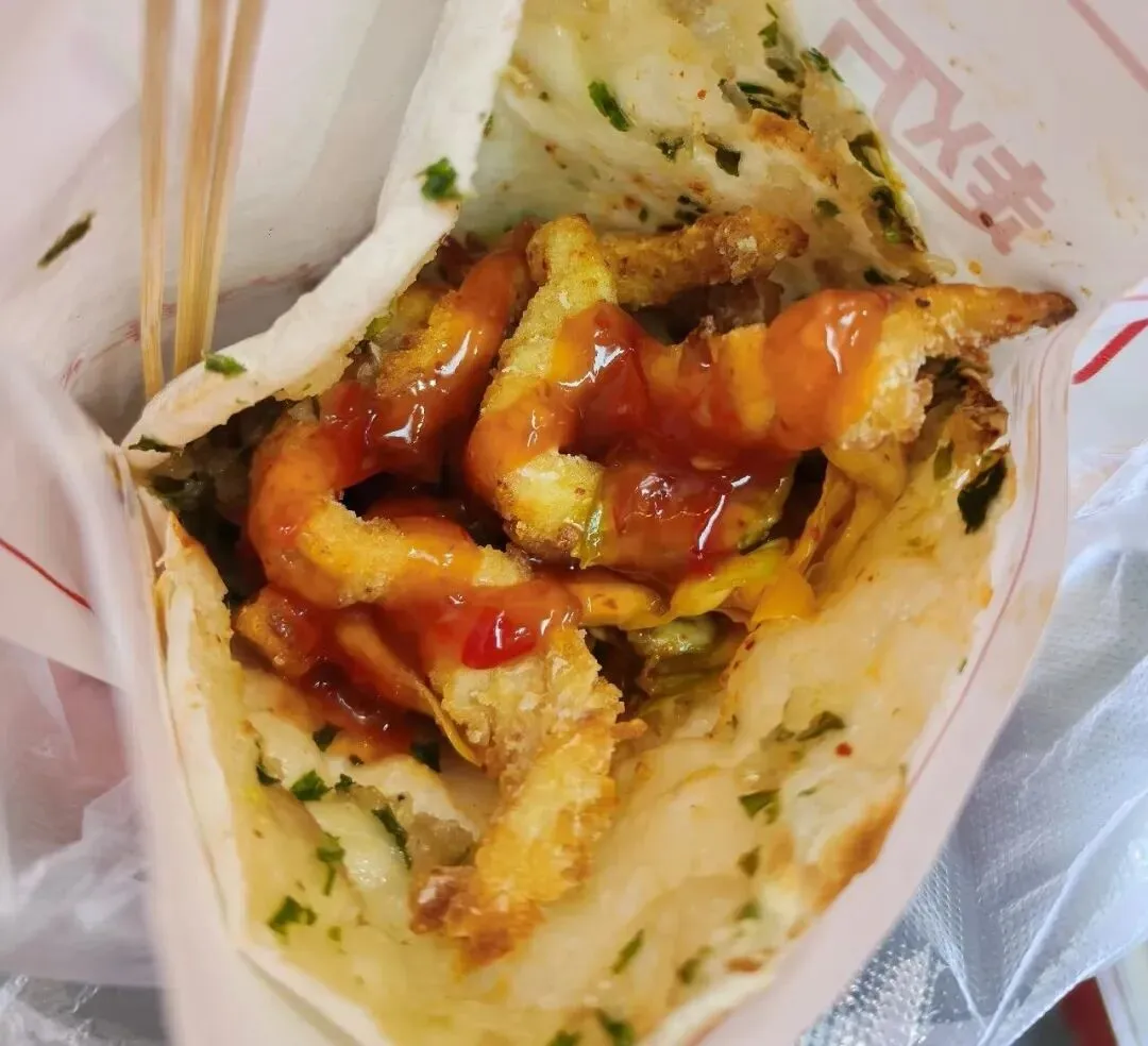 找路口那家没有炸这个字的,别的都是盗版,正版果然好吃,厚实现炸有汁水,就是排队要好久