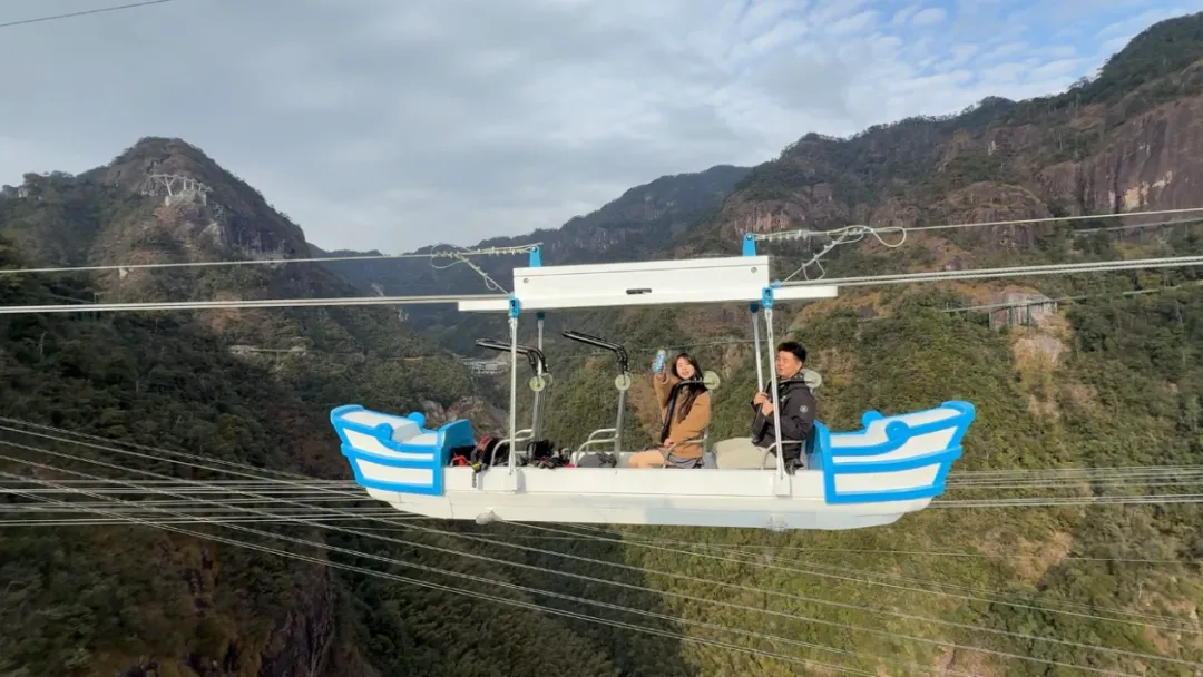 作为资溪文旅顶流,大觉山以“飞驰人生,马到成功” 为主题打造春节悬崖奇遇记,成为假期打卡首选地。“飞驰人生·马年行大运”悬崖奇航线串联悬崖索道、动车、蹦极等六大项目,游客可领取成就体验卡,解锁“飞跃人生六重境”的刺激体验。