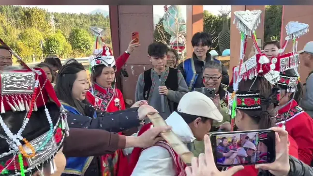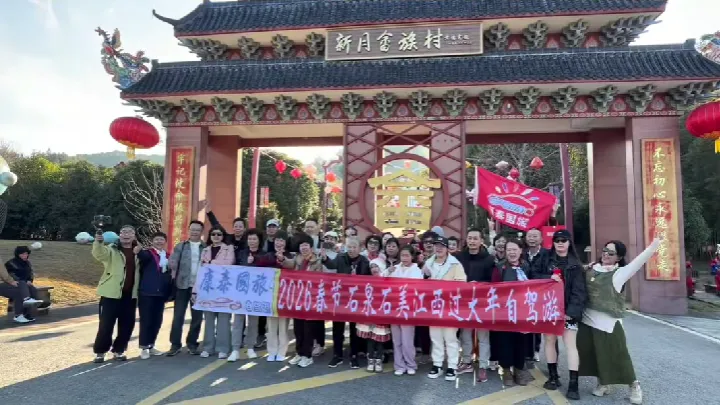 新月畲族村迎来广东自驾游客,大家品尝迎宾酒、体验打糍粑与畲族山歌、婚嫁民俗,感受独特畲乡年味。
