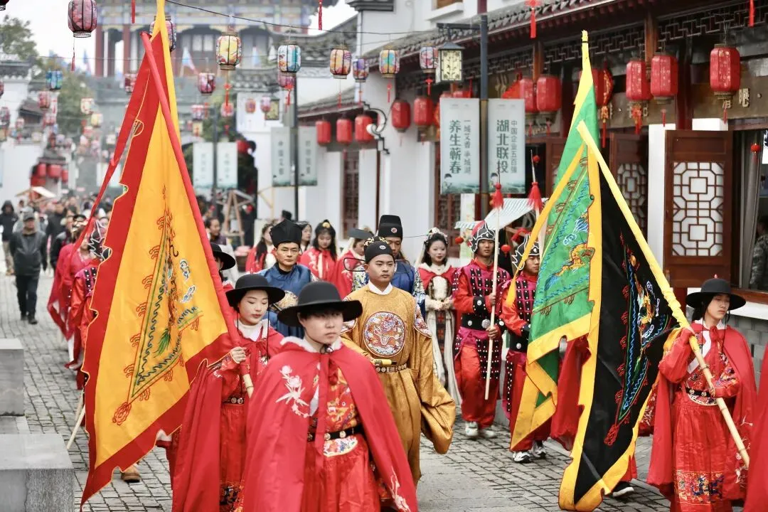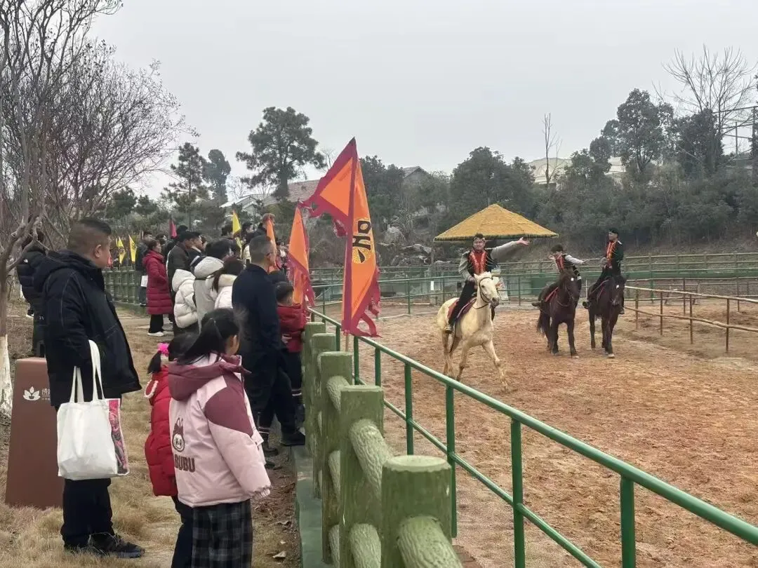 各类民俗表演持续输出节日欢乐。蕲春县李时珍文化旅游区“非遗汉服国潮嘉年华”庙会上,除大型实景演出外,日常的民俗表演、NPC互动不间断进行,保持园区高涨的人气。麻城市举办“非遗贺新春麻城过大年”活动,采用“城区主会场+乘马岗、龟山、黄土岗三镇分会场”的“1+3”全域联动模式,组织龙灯巡游、舞狮、花挑、莲湘、民歌等项目进行巡游与定点展演。团风县月亮湾露营基地“新年纳福系列活动”进入“趣玩接福”日,以套圈、投壶等趣味游戏为主,氛围轻松愉快。
