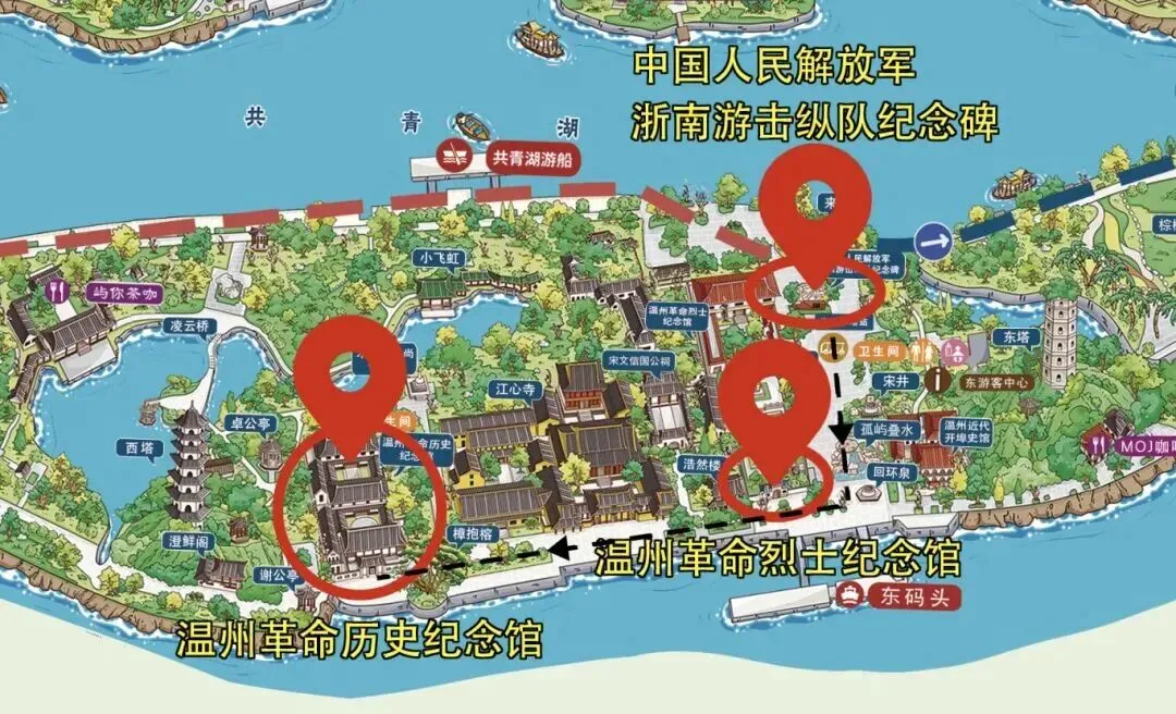 瓯江潮涌,江心屿枕波而立。这座“中国诗之岛”位列四大名屿,诗韵浸润千年。而山水之外,更藏滚烫红迹——浙南游击纵队纪念碑的冲锋身影、革命历史纪念馆的岁月回响、烈士纪念馆的精神丰碑,让诗意与热血交织。循着红迹踏屿而行,在诗画中读懂峥嵘岁月,传承不朽初心。