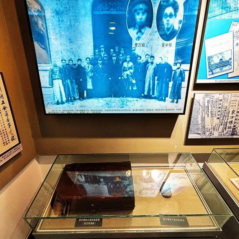 五四浪潮席卷东瓯,思想的惊雷唤醒了沉睡的瓯越大地。第一展厅中,首当介绍的是谢文锦烈士,他自上海归来,于1924年创立中共温州独立支部,如一束星火点燃浙南革命的荒原,却在“四一二”政变的血雨腥风中惨遭残忍杀害,用生命践行了初心。还有两位烈士令我印象深刻。郑恻尘烈士怀抱“实业救国”之志,创办温州中一花席厂,1924年入党后成为“温独支”核心领导人,“四一二”反革命政变前夕,为掩护战友脱险,他在杭州寓所被反动军警包围,从容被捕后英勇就义。蔡雄烈士带领同窗学子抵制日货、惩办奸商,声援“五卅”反帝运动,即便身陷囹圄遭受酷刑,仍坚贞不屈,以青春之躯捍卫民族尊严。