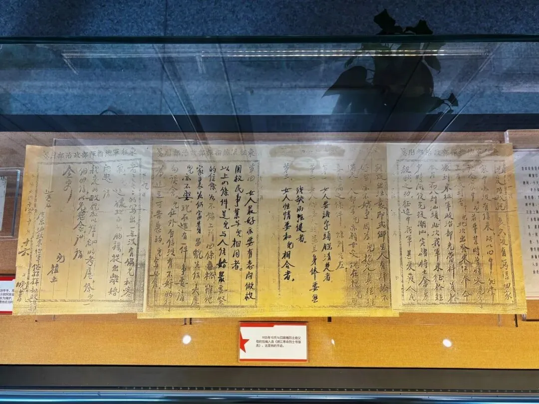 山河飘摇之际,展厅中,一个空白头像下的名字格外沉重——金缄三。反革命政变后,他挺身而出组建三千余人的北区农民协会,1930年被捕,面对敌人的威逼利诱,始终坚贞不屈,最终惨遭杀害,未留下一张影像,却将精神刻进了浙南的山河。读着刘素贞烈士的生平,那只会在文学作品中出现的故事仿佛就在眼前上演。她既是母亲也是战士,三个儿子先后为革命牺牲,白发人送黑发人的锥心之痛,未曾动摇她掩护革命力量、为红军摆渡的决心,用柔弱的肩膀扛起了革命的希望。22岁的麻植烈士,为守护党的机密,冒险返回广州军委办事处,在敌人破门而入的前一刻,毅然烧毁文件与党员名册,留给母亲的却是那字字珠玑的家书,将生命永远定格在炽热的青春年华。