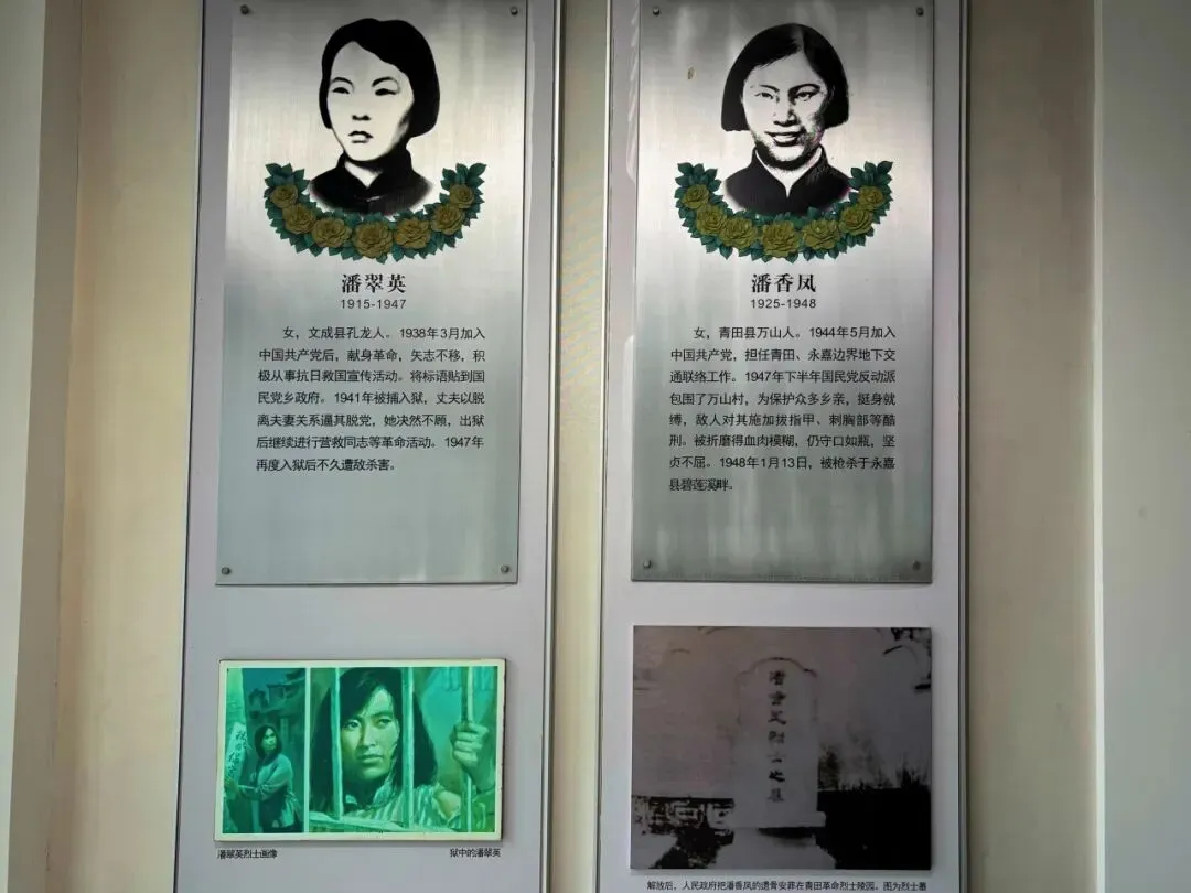 温州爱国民主运动风起云涌,浙南游击战争烽火连天。展厅中,潘翠英与潘湘凤两位烈士的头像并列,震撼人心。潘翠英入党后矢志不渝献身革命,将抗日救国标语贴到国民党乡政府墙上,被捕入狱后,面对丈夫“脱离夫妻关系”的威逼,她决然不从,出狱后继续投身营救同志的革命事业。1947年下半年,国民党反动派包围万山村,潘湘凤为保护乡亲挺身而出,主动就缚。敌人对她施以拔指甲、刺胸部的酷刑,将她折磨得血肉模糊,她却始终守口如瓶,用生命守护了全村人的安全,书写了共产党人的钢铁意志。