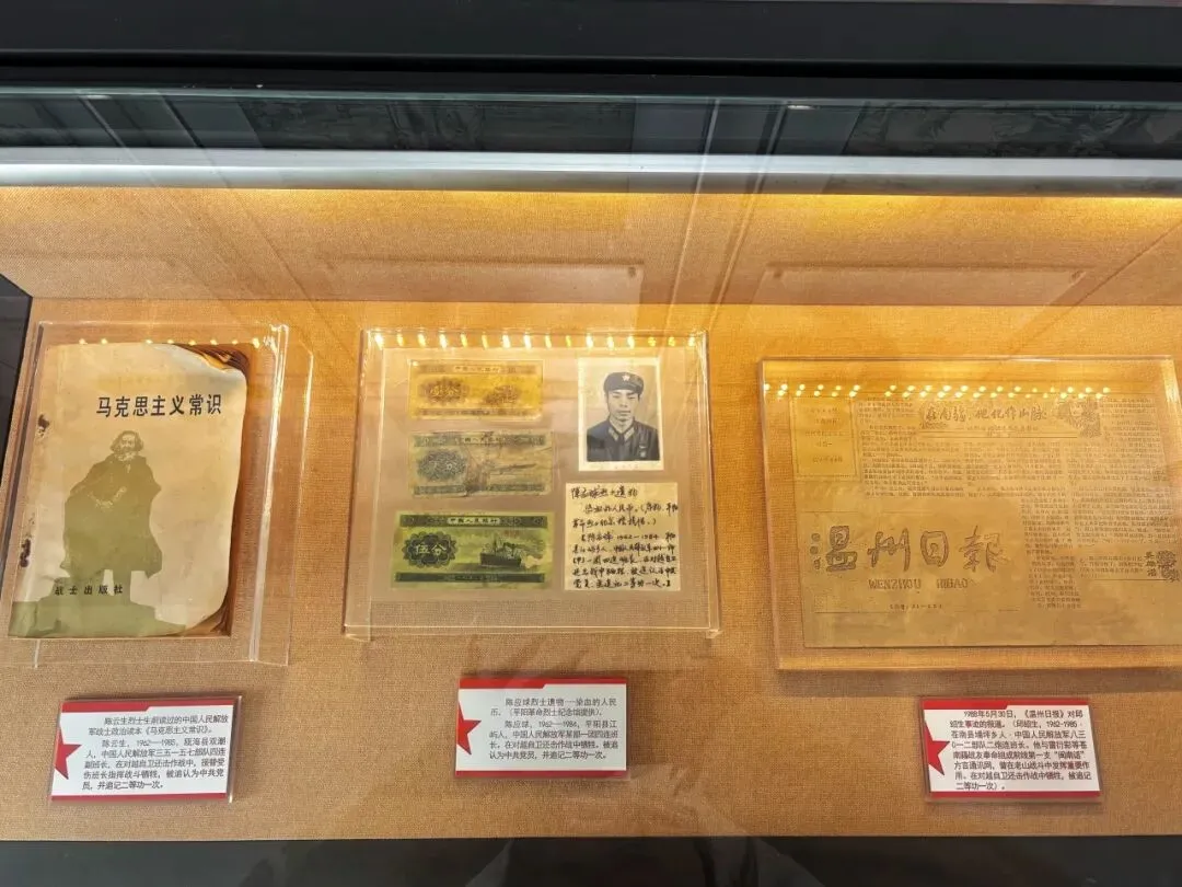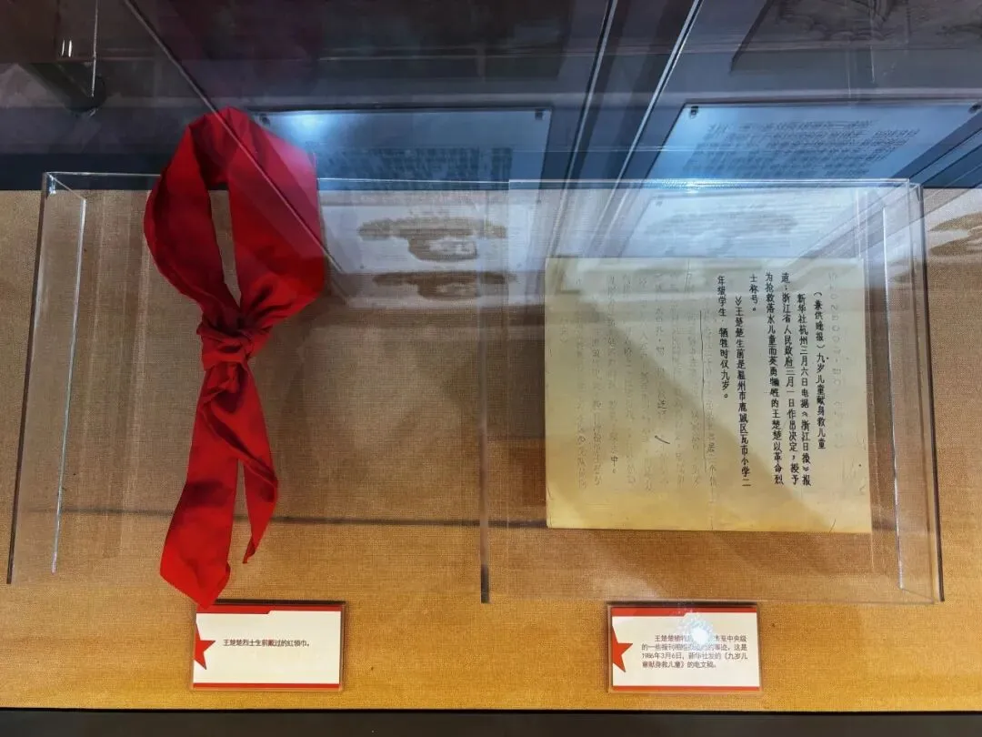 第四展厅来到了革命胜利后,英雄的身影也从未远去,他们的精神在和平年代续写新的篇章。颜安民、徐宗友等烈士,驾船渡海作战,为解放温州沿海岛屿血染碧波;鲍洪康、陈继阶等烈士,深入山区肃清匪特,用热血巩固新生的人民政权。对越自卫反击战中,陈应球烈士坚守阵地,染血的人民币见证着他保家卫国的赤诚;年仅九岁的兰楚楚烈士,危急时刻挺身而出献身救童,鲜艳的红领巾映照出最纯粹的勇敢;抗台一线上,柳良鸽烈士身着带泥的水靴,为保卫国家财产与人民安全光荣殉职,用生命诠释了新时代的担当。