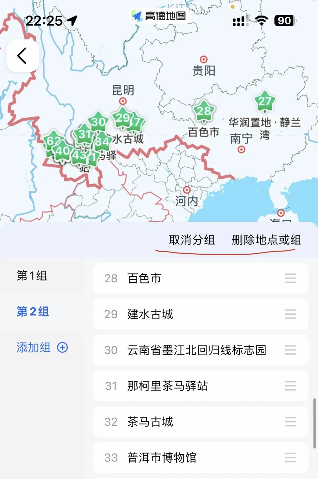 📝方法:打开高德地图—找到我的——找到收藏夹——建立云南游——首页搜索目的地景点,吃的,住的——收藏分组进指定收藏夹