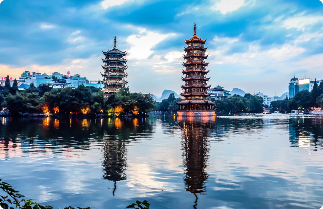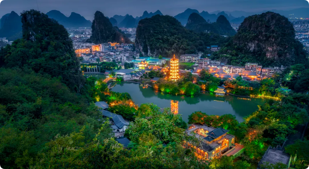 乘坐游船夜游两江四湖,感受桂林夜色的独特魅力。