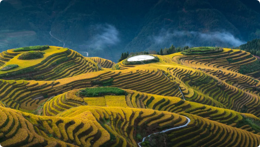 日出和日落时分是拍摄梯田的最佳时机,光线柔和,层次分明。