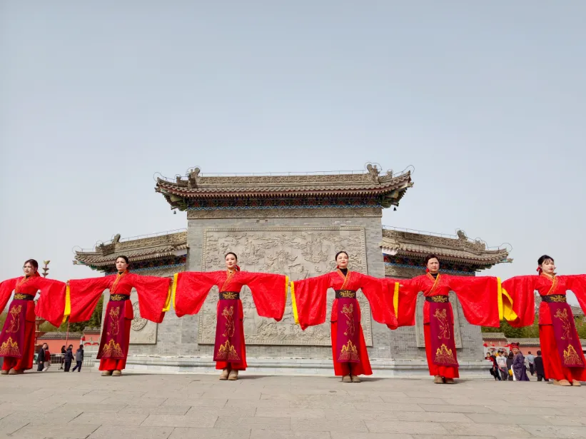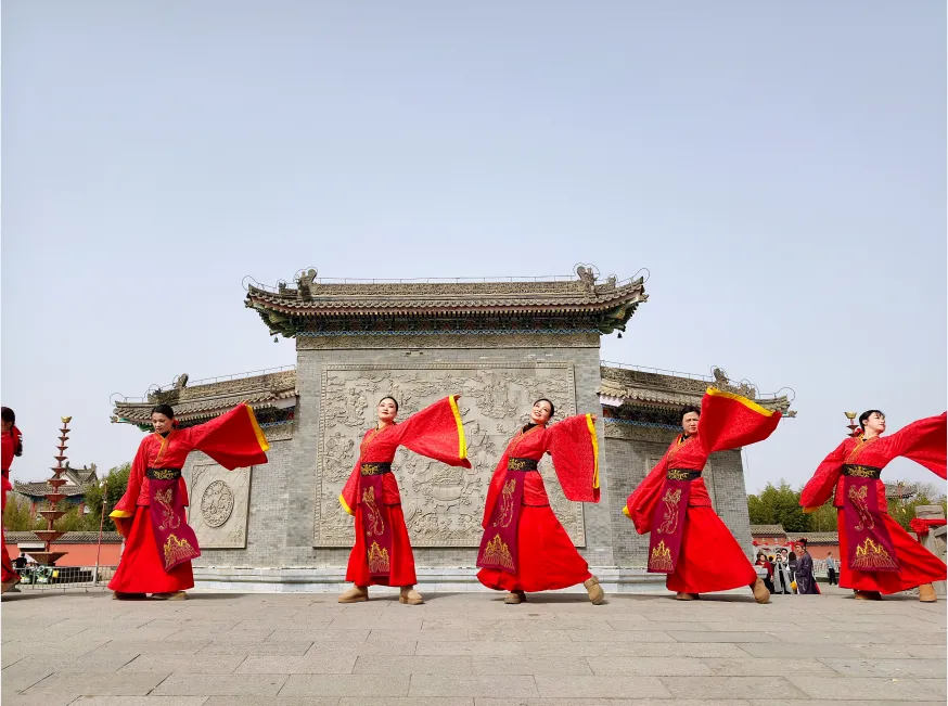 福启财门开 乐舞迎宾朋——大年初五一大早,乐舞迎宾演出准时启幕。舞者们身着华服,踏着丙午马年的春风款款起舞,带领游客在古风雅韵中步入景区,用隆重的古礼拉开迎财纳福的序幕。