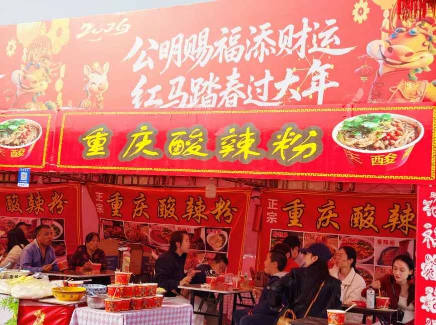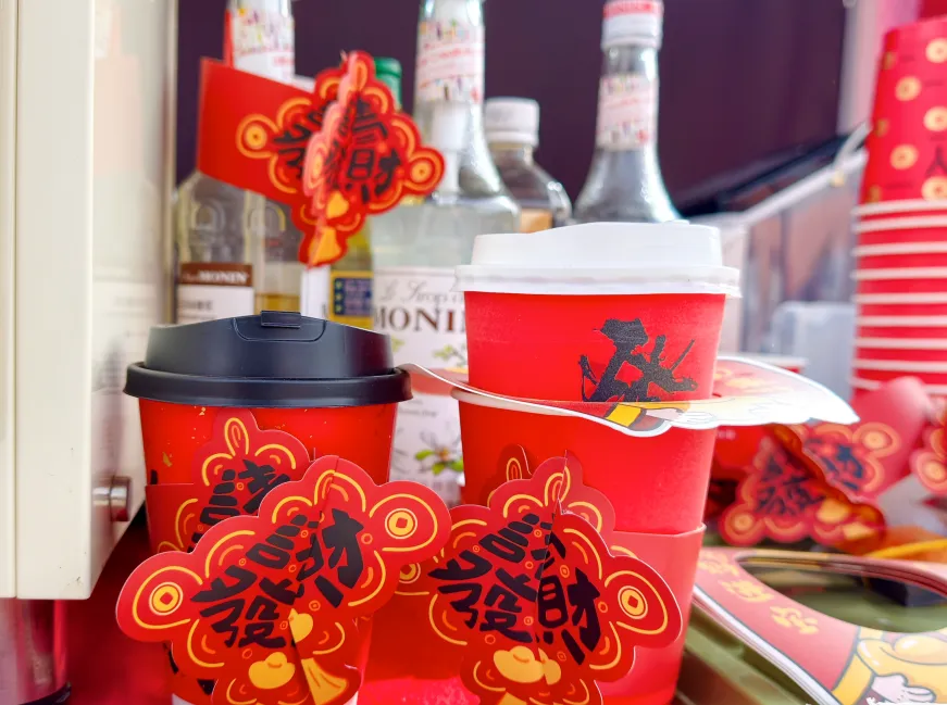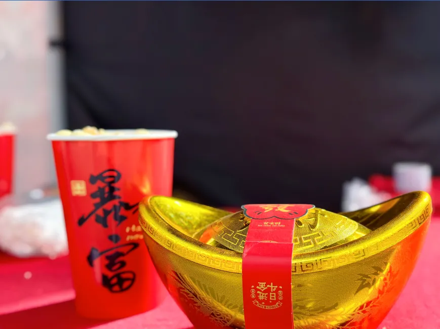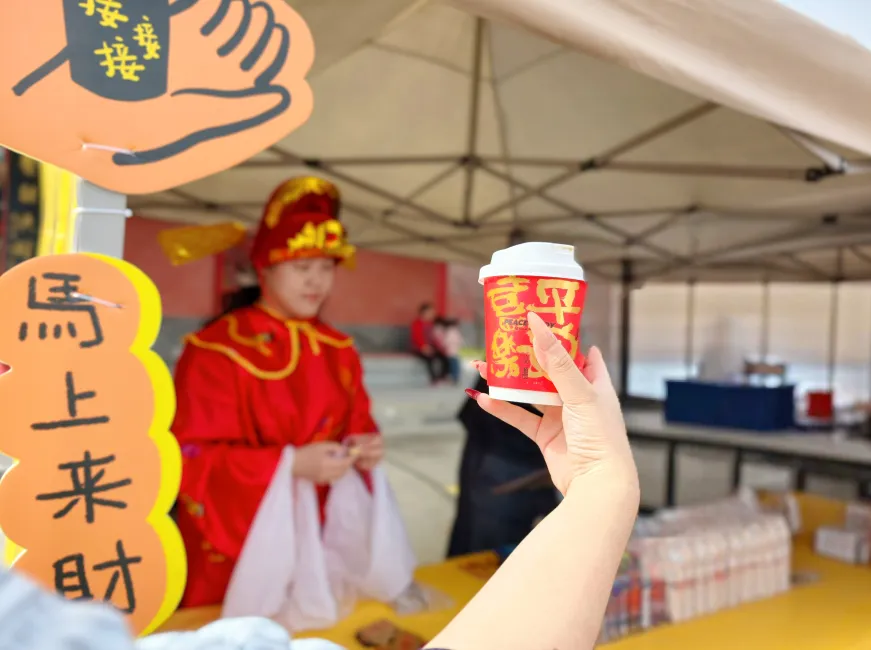 想解腻?来一杯财运酸梅汤。酸甜爽口的汤汁,装在印着财神图案的纸杯里,喝下去,不仅解了旅途的疲惫,更寓意“酸甜皆如意,财运伴君行”。