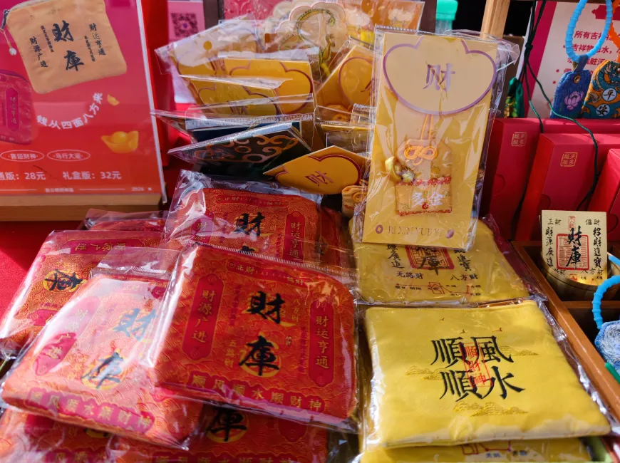 初五逛景区,怎么能少了“财气周边”?景区内的文创区,准备了满满惊喜。文创工艺品与国潮饰品颜值与寓意双在线。元宝造型的饼干、寓意“招财进宝”的香囊、马年专属的红玛瑙手串,每一件都透着巧思。挑一件挂在身上,既是时尚搭配,也是行走的“财运符”。