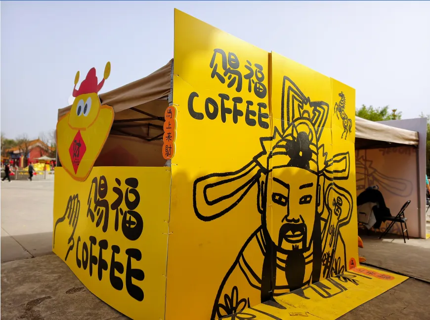 年轻人的社交密码,这里早已解锁。财神递咖啡摊位前,身着古装的“财神爷”亲手为你递上一杯醇香拿铁,杯身上印着“马到成功”、“财源广进”的吉祥话,喝一口,开启“清醒搞钱”的2026。