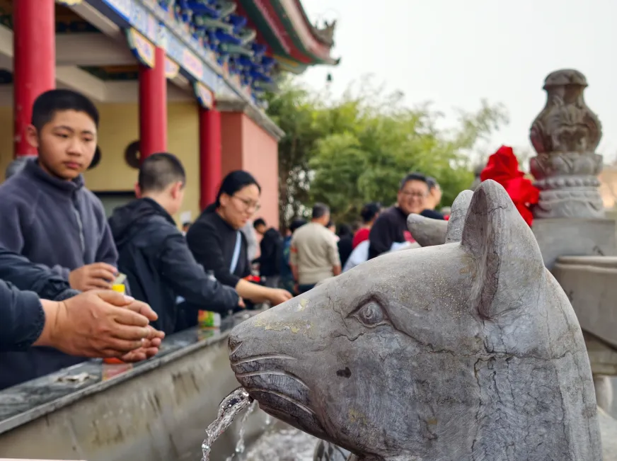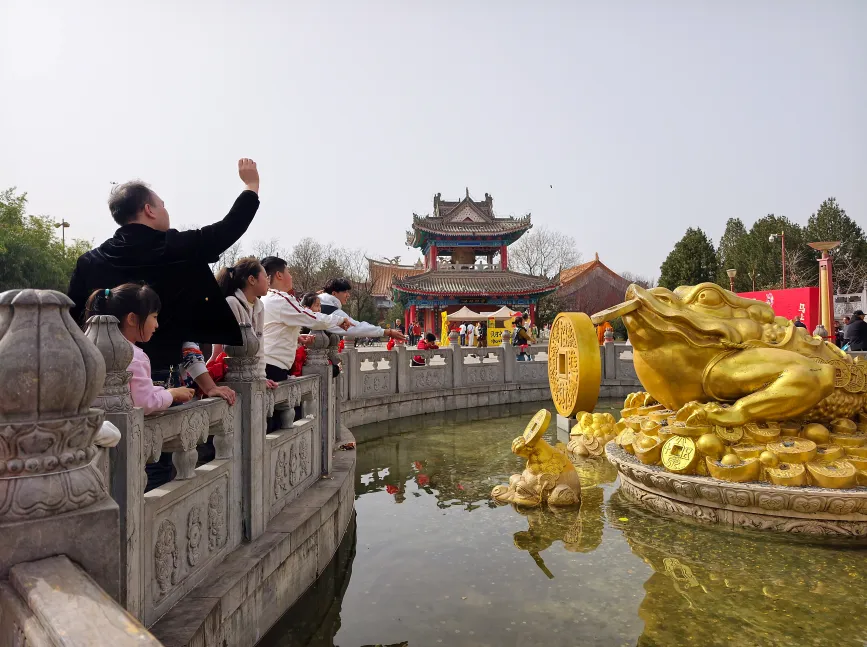 想要马年财运旺,打卡拍照不能少!景区内精心布置了多处财福打卡点,每一处都藏着满满的吉祥寓意。财富文化广场上,赵公明元帅的雕像高大庄严,与五间六柱牌坊的灯笼阵交相辉映,拍出的照片大气又喜庆。十二生肖净手池、金蟾投币等互动打卡点,不仅出片率超高,还能参与互动,投一枚硬币,许一个心愿,寓意“金玉满堂,财运亨通”。