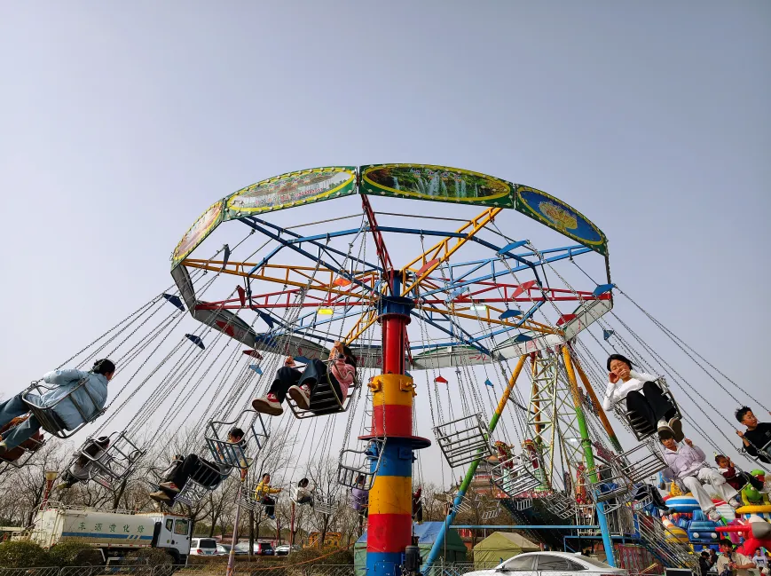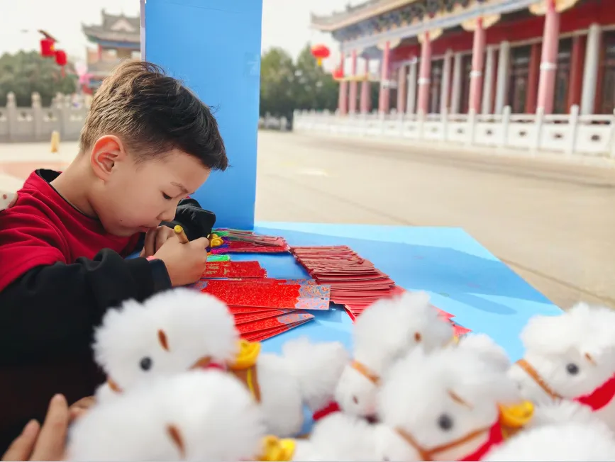 带着孩子的家庭,儿童游艺区绝对是欢乐天堂。充气城堡、套圈游戏……孩子们的欢声笑语,就是最好的“添福符”。