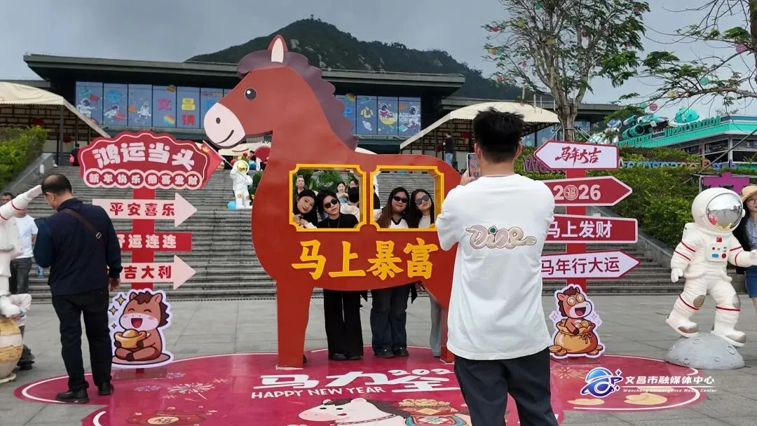 同时,景区紧扣新春佳节,打造形式多样的特色体验活动,将民俗趣味、亲子互动与文旅打卡融为一体。精心布置的新春打卡点与文创点位,让游客在游玩中感受浓浓的年味儿与文化创意,全方位展现文昌“山海+航天”的独特文旅魅力。