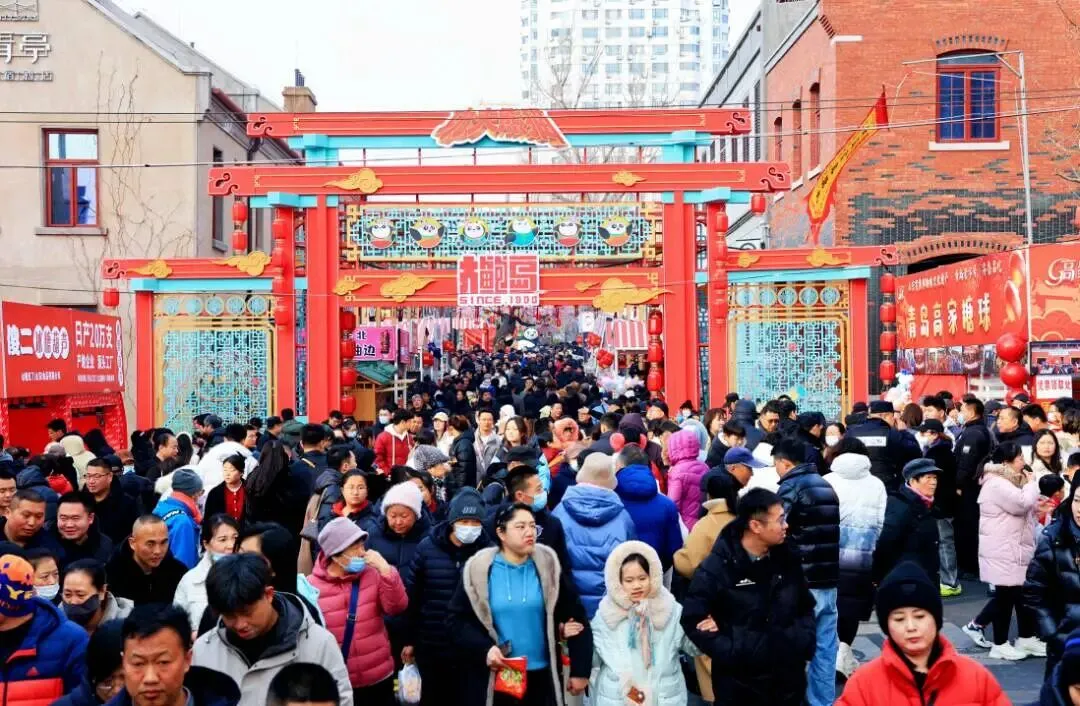 全省各地深挖在地文化资源,将非遗技艺、民俗演艺融入景区、街区和乡村,打造沉浸式年俗体验空间,让传统年味在创新中回归。济南市天下第一泉景区依托秦琼传说推出NPC互动,千佛山庙会汇集百余种非遗美食;商河鼓子秧歌登上央视舞台,并走进城市商圈,实现城乡联动。青岛市文化馆汇聚楹联展、非遗文创展、剪纸大赛优秀作品展,天后宫举办第27届新正民俗文化庙会,非遗市集与互动体验区人气高涨;德国总督楼旧址博物馆推出“马舞新春”非遗快闪教室,面向青少年赠送生肖挂件。淄博市淄川区聊斋城举办花灯节,桓台县马踏湖湿地推出芦苇荡里过大年系列活动。烟台市拥有六百余年历史的毓璜顶庙会启幕,海阳大秧歌贺年会巡演走进高铁站与广场。临沂市郯国古城沉浸式实景演出、临沭冠山庙会的舞龙变脸、高新区卧虎山的英歌舞巡演,让游客在城乡漫游中感受地道中国年。菏泽市曹县组织民间艺术串街巡游,马叉、竹马、舞狮等展演热闹非凡;巨野青龙山冬季民俗文化节汇聚苗侗文化展演与鲁西南传统技艺,乡村年味浓郁。