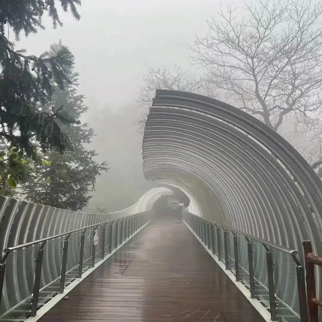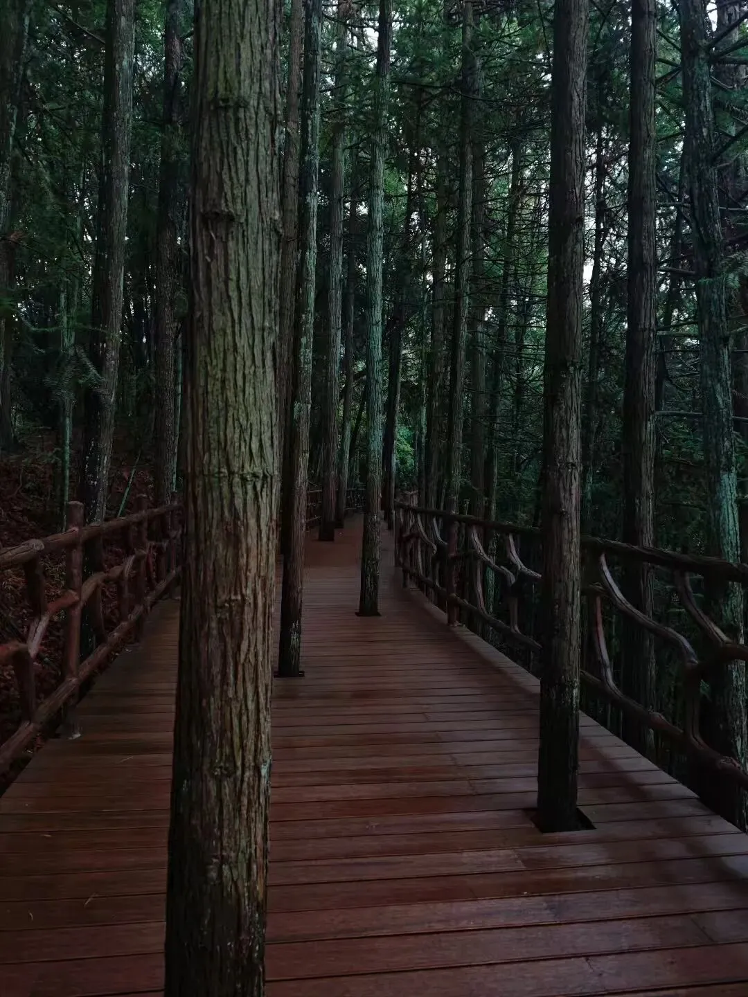 步道铺着松针与残雪,踩上去咯吱响,每步都陷进半寸深的冬意。两边树褪了夏装:松树仍撑着绿伞,枝桠却挂着冰棱,阳光照上去像水晶串;杉树的针叶染了浅褐,像老人梳理整齐的白发;杂木丛里最安静,枯枝上凝着霜,偶尔见几簇忍冬藤挂着红果,在白雪里亮得像句祝福。