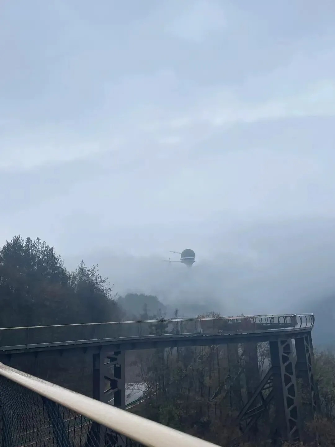 月亮坪的冬,是雪与雾凇的舞台。昨夜落了薄雪,松枝压着雪团,像谁给绿伞绣了白边;远峰的雪线分明,青黑山岩与白雪撞出利落的轮廓,像水墨画里没擦净的笔锋。