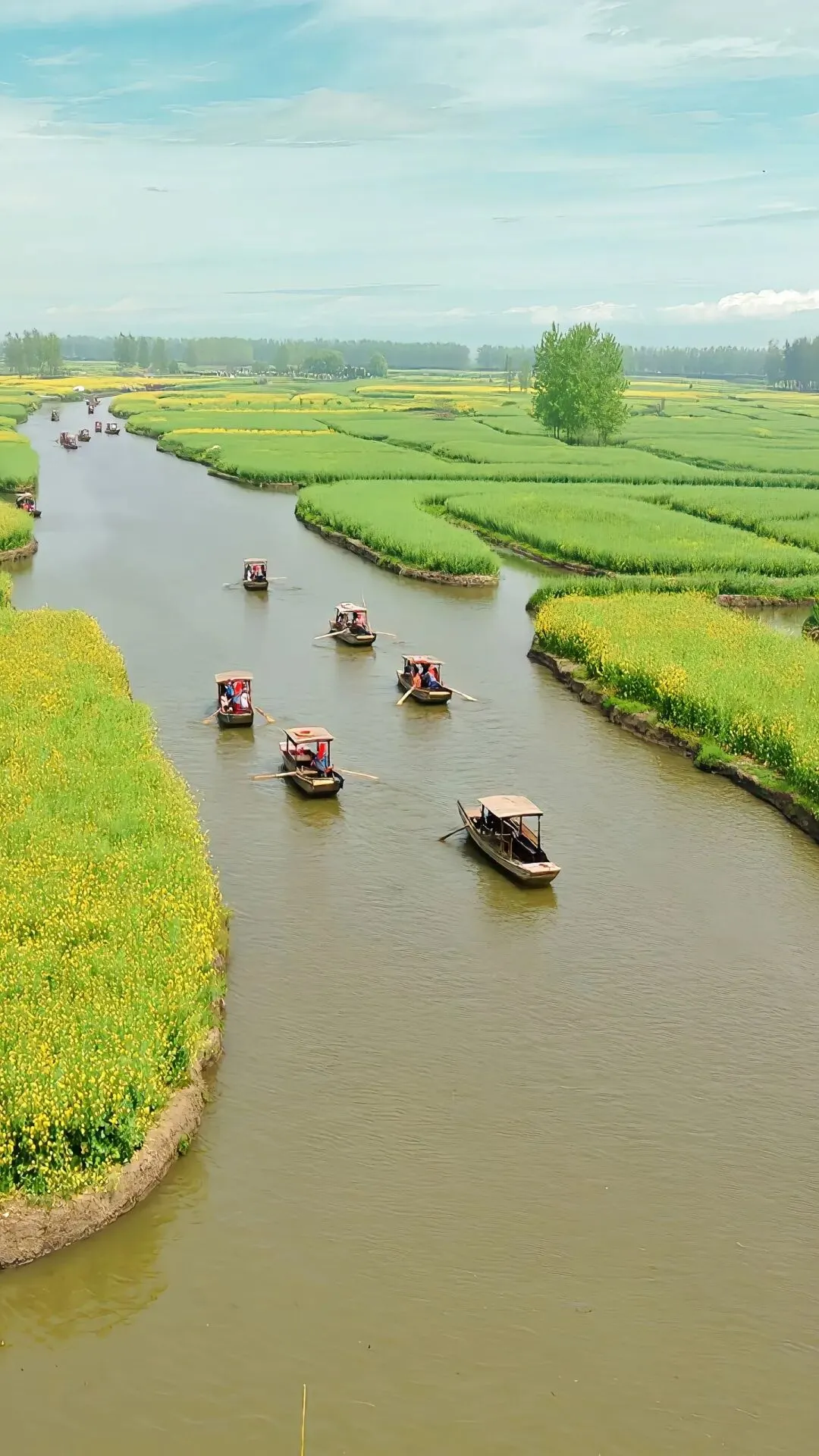 这里是位于江苏省兴化市的千垛景区,又称千岛菜花景区,总面积近万亩。每到春天,千垛景区四面环水的“垛田”上长满了金黄色的油菜花,一幅“油菜花开金满地”的壮阔美景,“河有万湾多碧水,田无一垛不黄花”正是千垛景区的真实写照。置身于一望无际的千垛菜花间,感受随风而来的醉人菜花香,有心旷神怡之感、美不胜收之慨。一定要和心爱的人去一次!#旅行推荐官 #油菜花的季节 #踏春赏花 #千垛菜花风景区图文伙伴计划